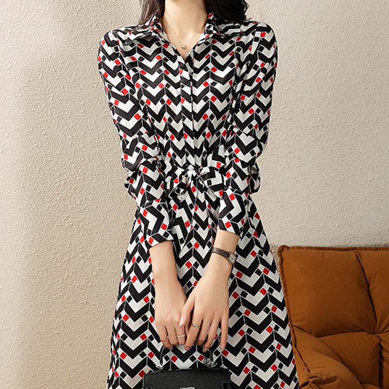 Cette robe imprimée à manches longues incarne le charme naturel et la sophistication discrète. Son design fluide et sa taille marquée mettent en valeur la silhouette tout en offrant une allure élégante et contemporaine. C’est une pièce idéale pour les femmes qui souhaitent allier style et confort au quotidien.
