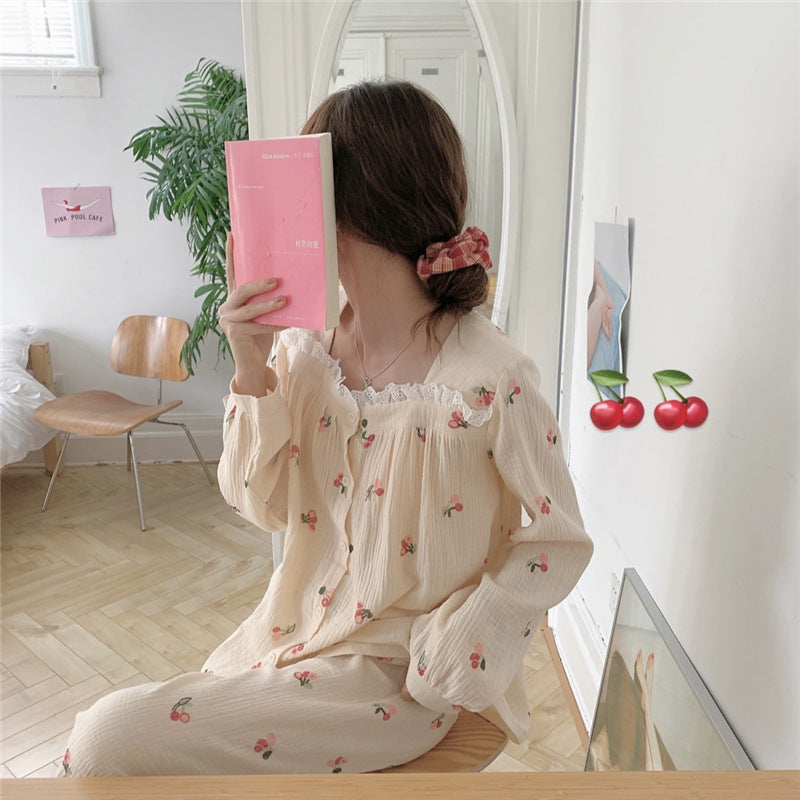 Every element of these pajamas has been carefully considered: the subtle lace on the sleeves and collar adds a sophisticated touch, while the fitted cut flatters the silhouette without compromising comfort. The strong seams and impeccable finishes demonstrate an attention to detail that makes all the difference.